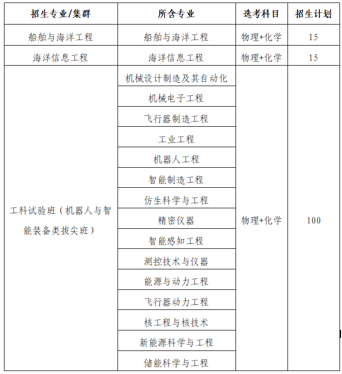 备注:工科试验班(机器人与智能装备类拔尖班)采用2+2跨校区流动培养模式,前2年在威海校区(威海市)培养,后2年在校本部(哈尔滨市)培养;由校本部高端人才担任班主任;与校本部学生享受相同推免政策。